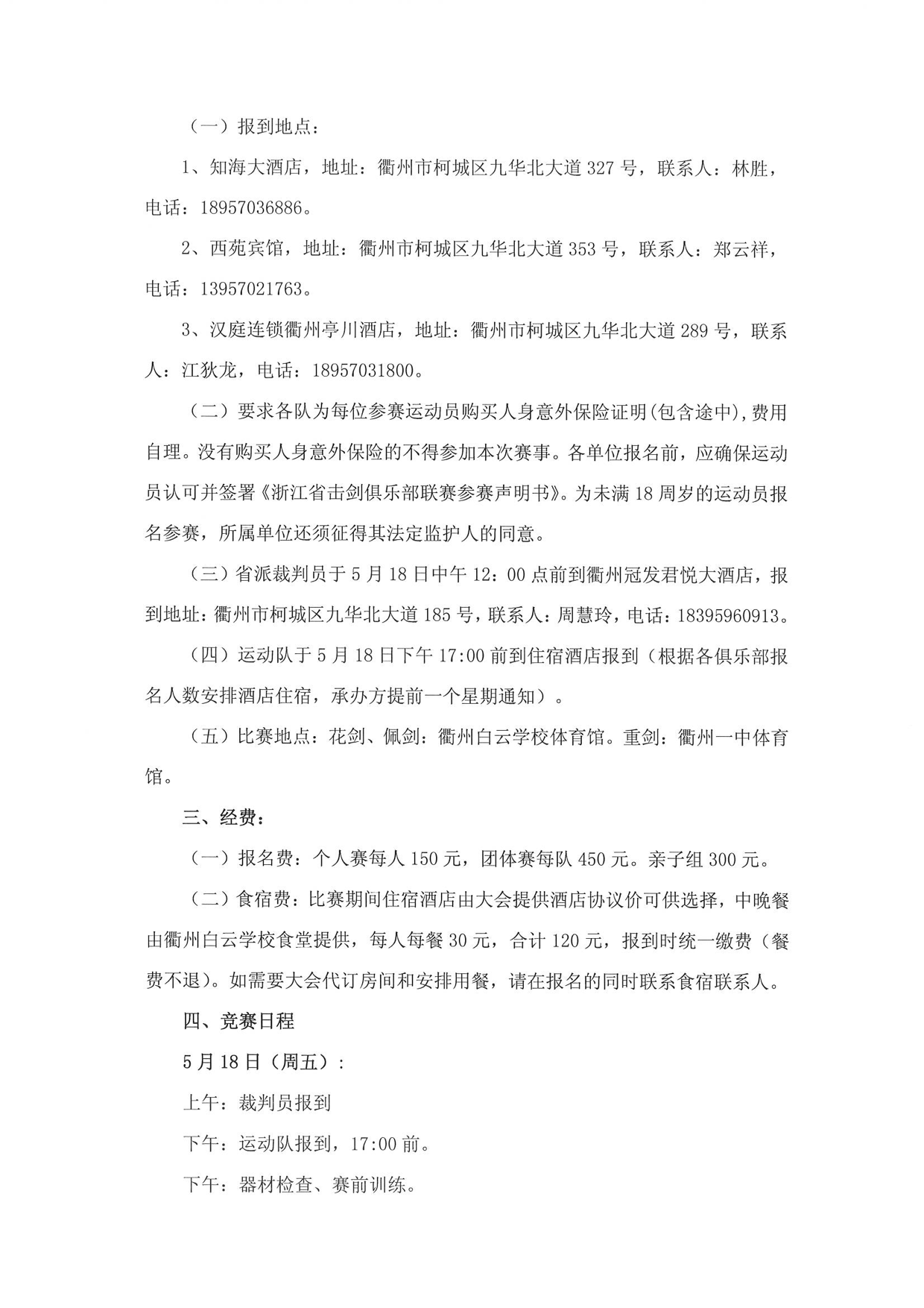2018年浙江省击剑俱乐部联赛(第二站)补充通知